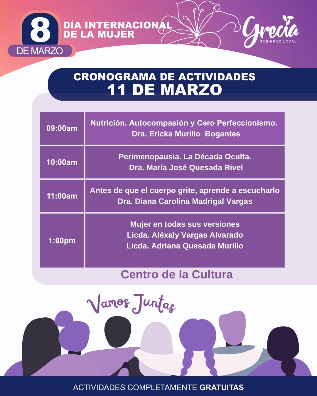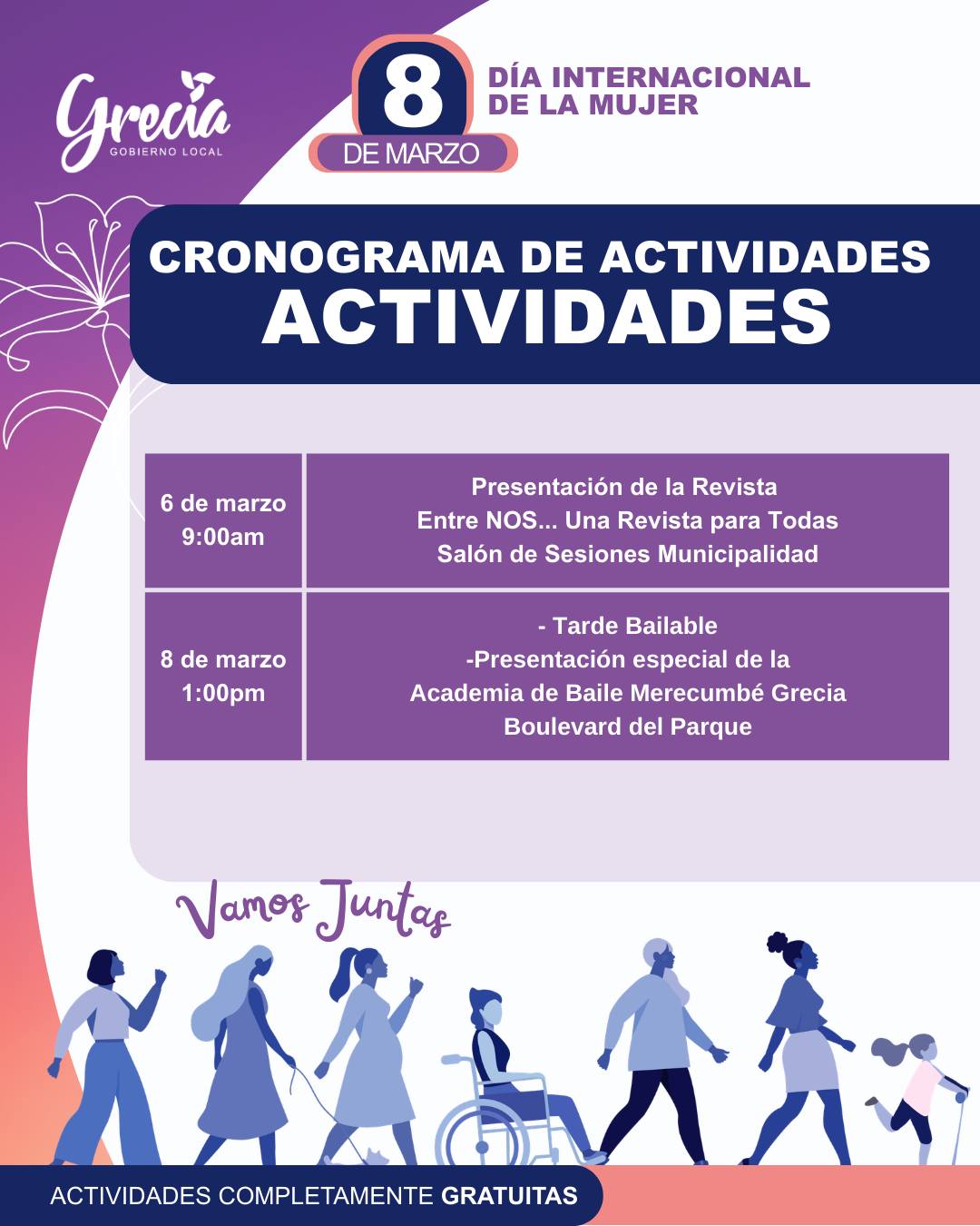 Todas las actividades son completamente gratuitas puede inscribirse al correo cristina.cespedes@grecia.go.cr o 24956277